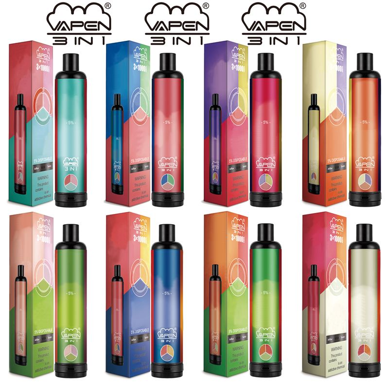 Original Vapen 3in1 3000puffs E Cigarettes Kits Disposable Vape Pen 3 In 1 Vaporizer 1400mah Battery